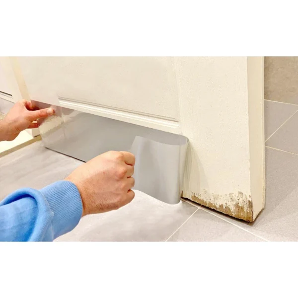 «این یک ورق ضد پوسیدگی درب حمام است که روی لبه پایین درب میچسبانید تا درب نپوسد.»